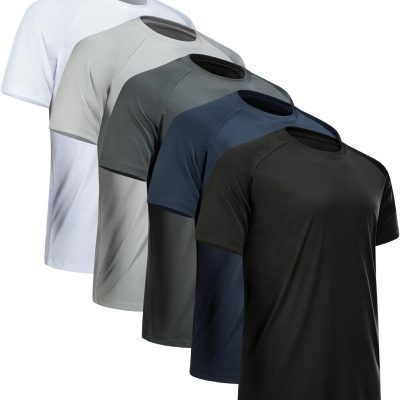 5 Pack Mesh Workout Shirts for Men Dry Fit Gym Shirts Quick Dry Athletic Short Sleeve T-Shirt Moisture Wicking